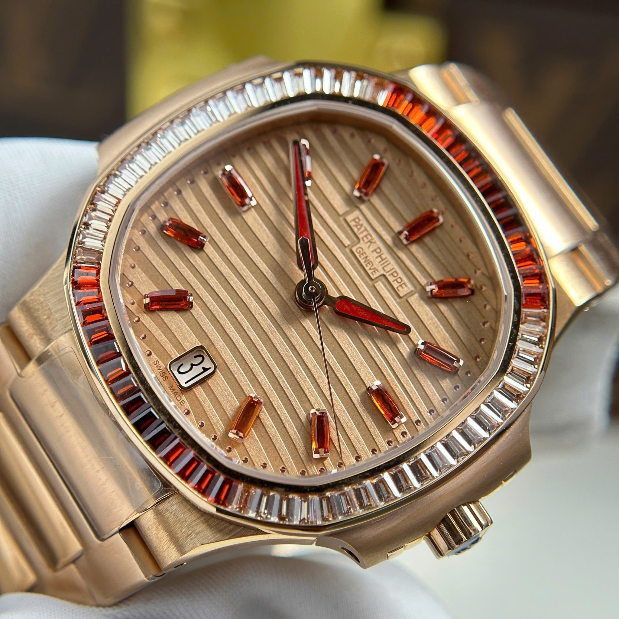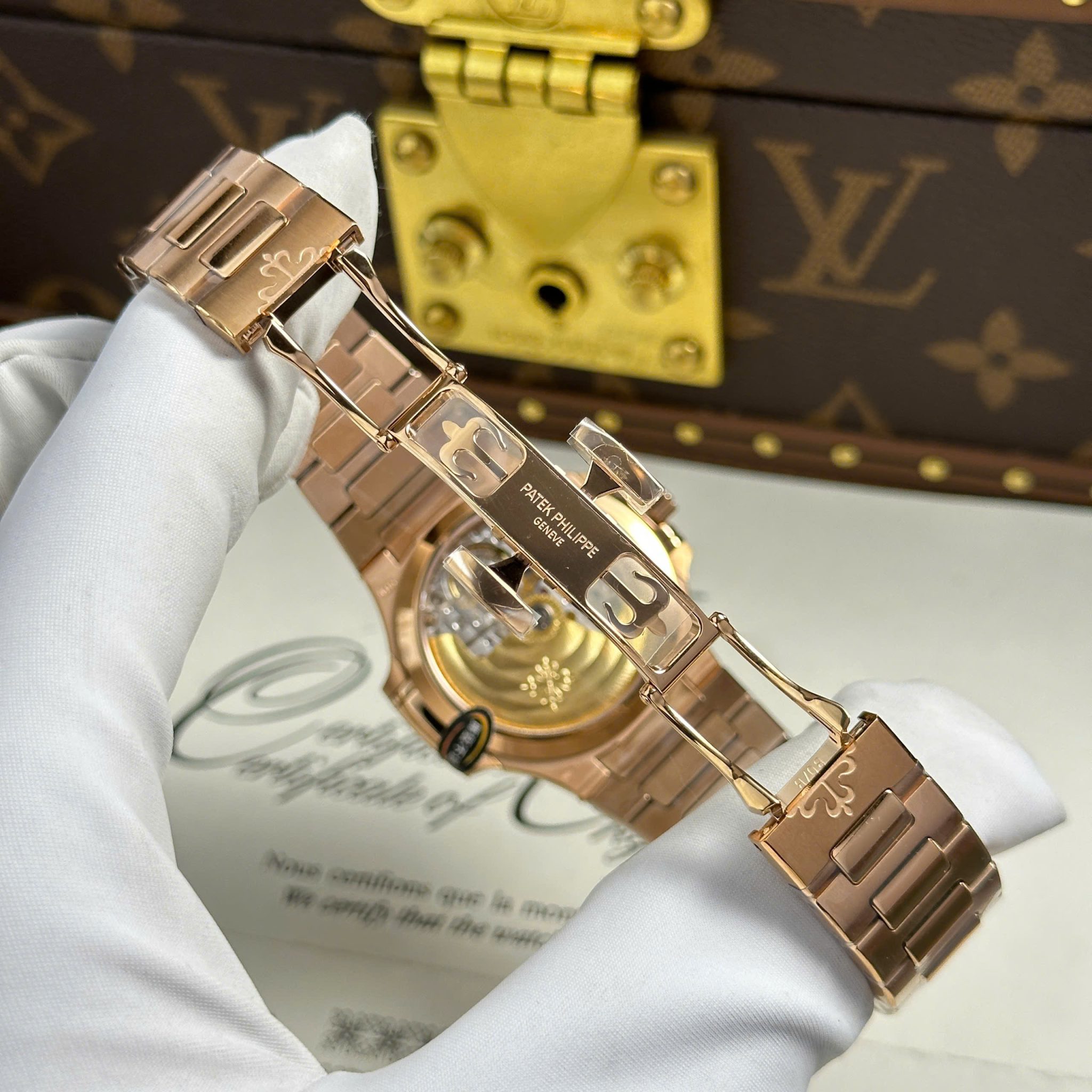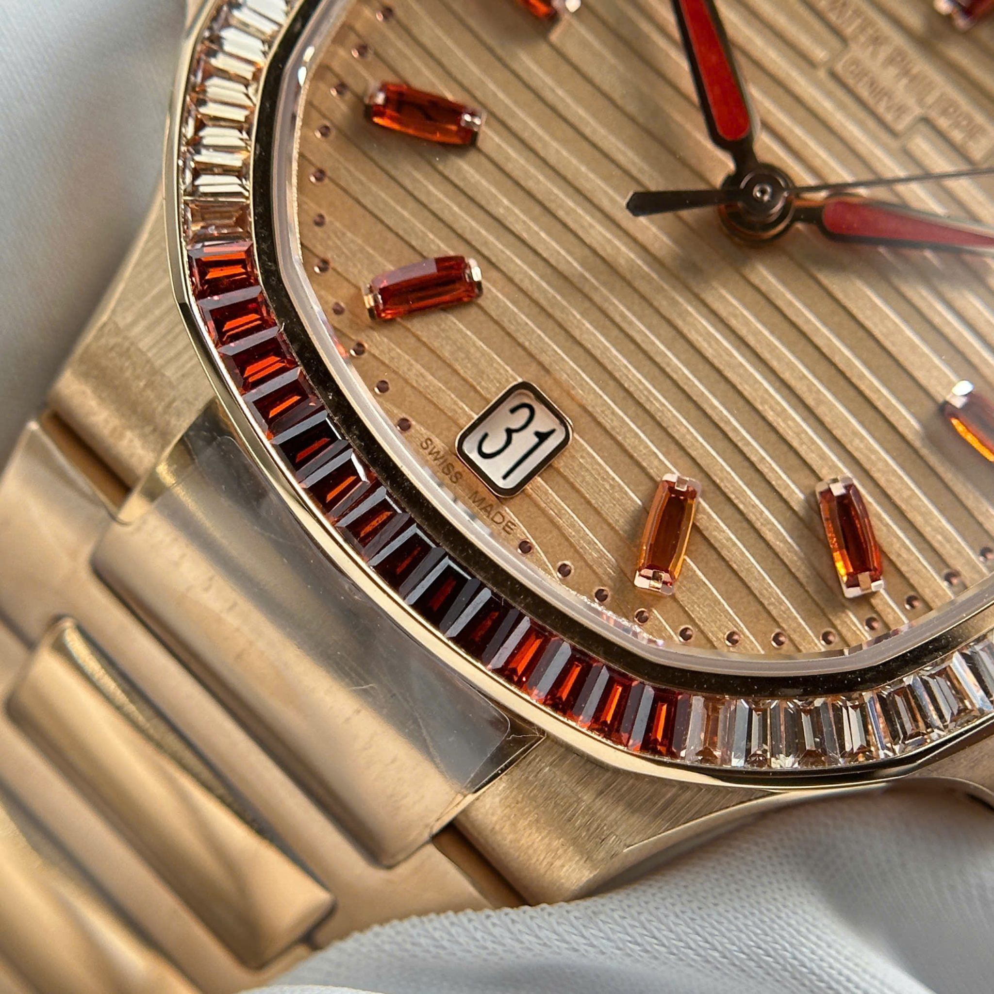 Patek Philippe Nautilus 7118/1300R-001 Gold Dial Rose Gold 1:1 Best Copy 3KF 35.2mm