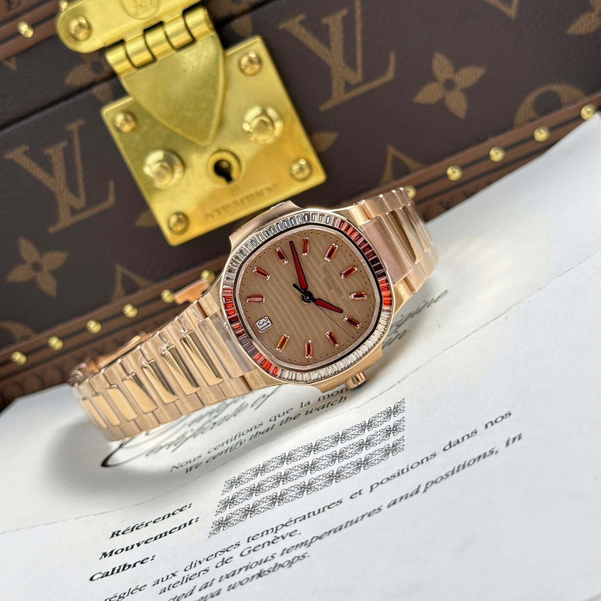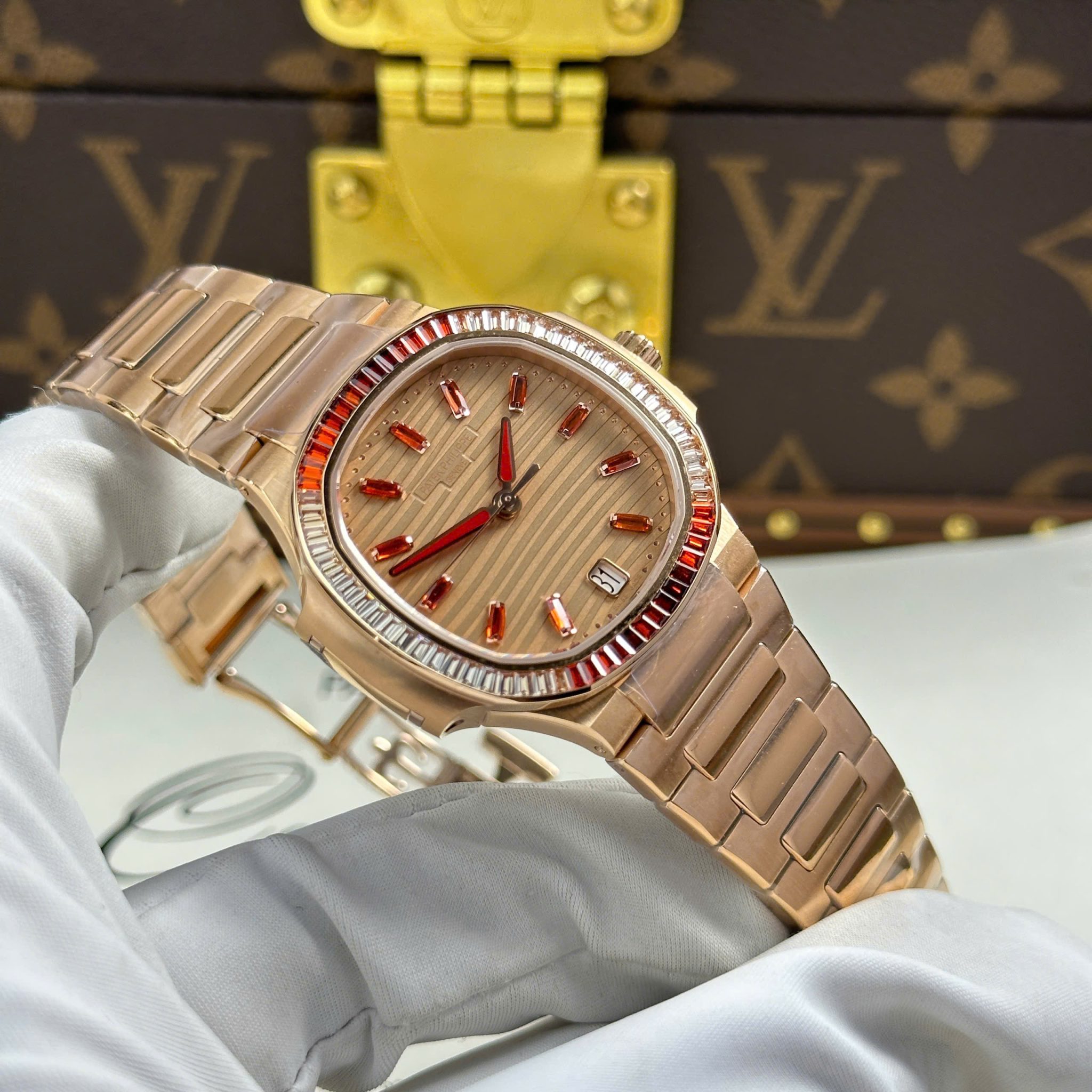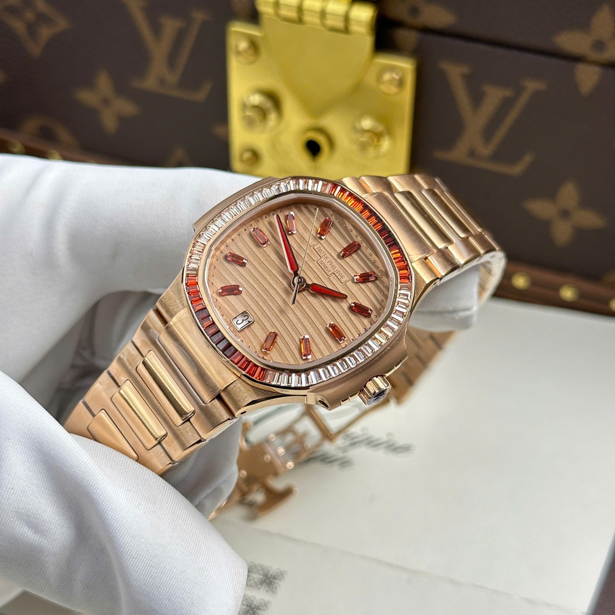 Patek Philippe Nautilus 7118/1300R-001 Gold Dial Rose Gold 1:1 Best Copy 3KF 35.2mm