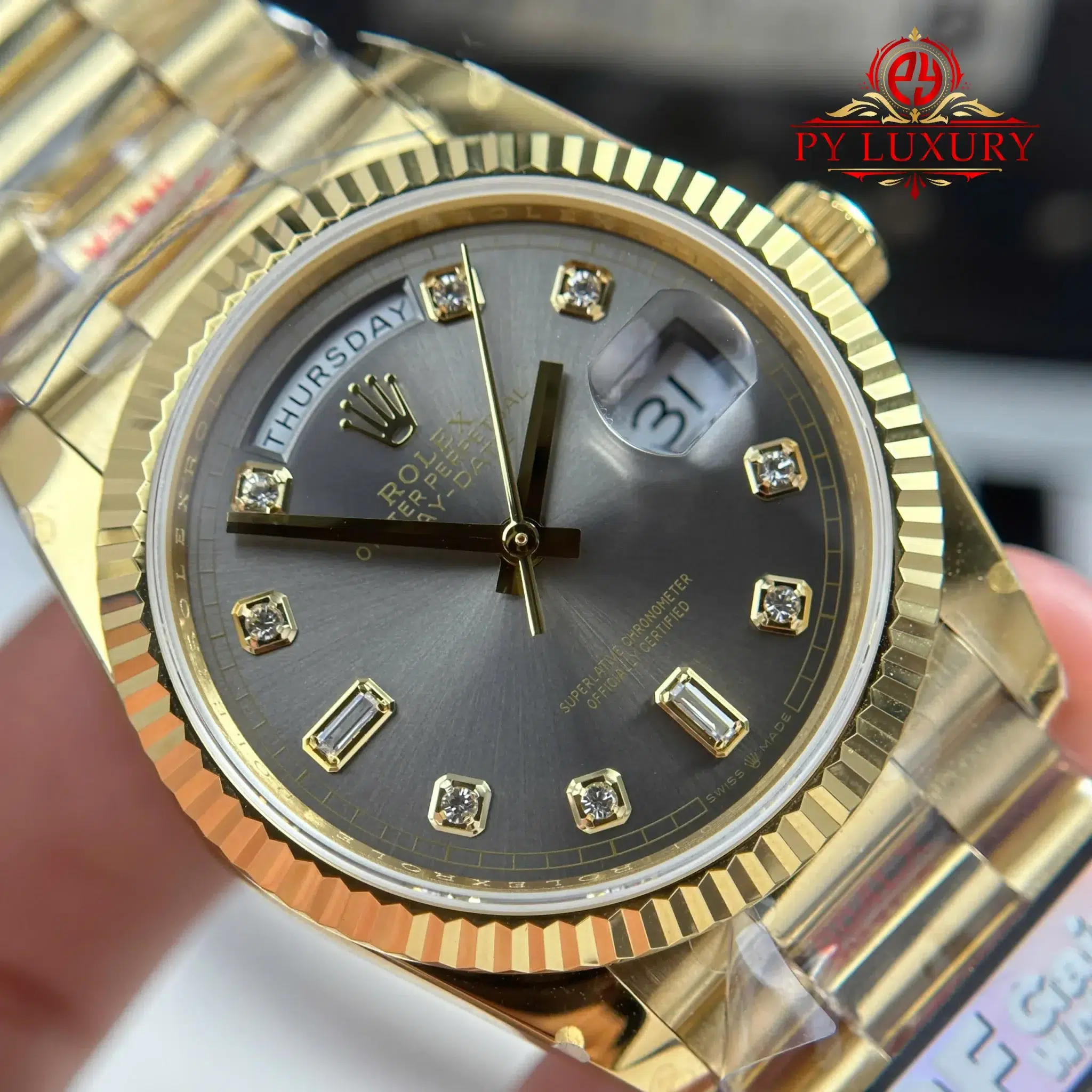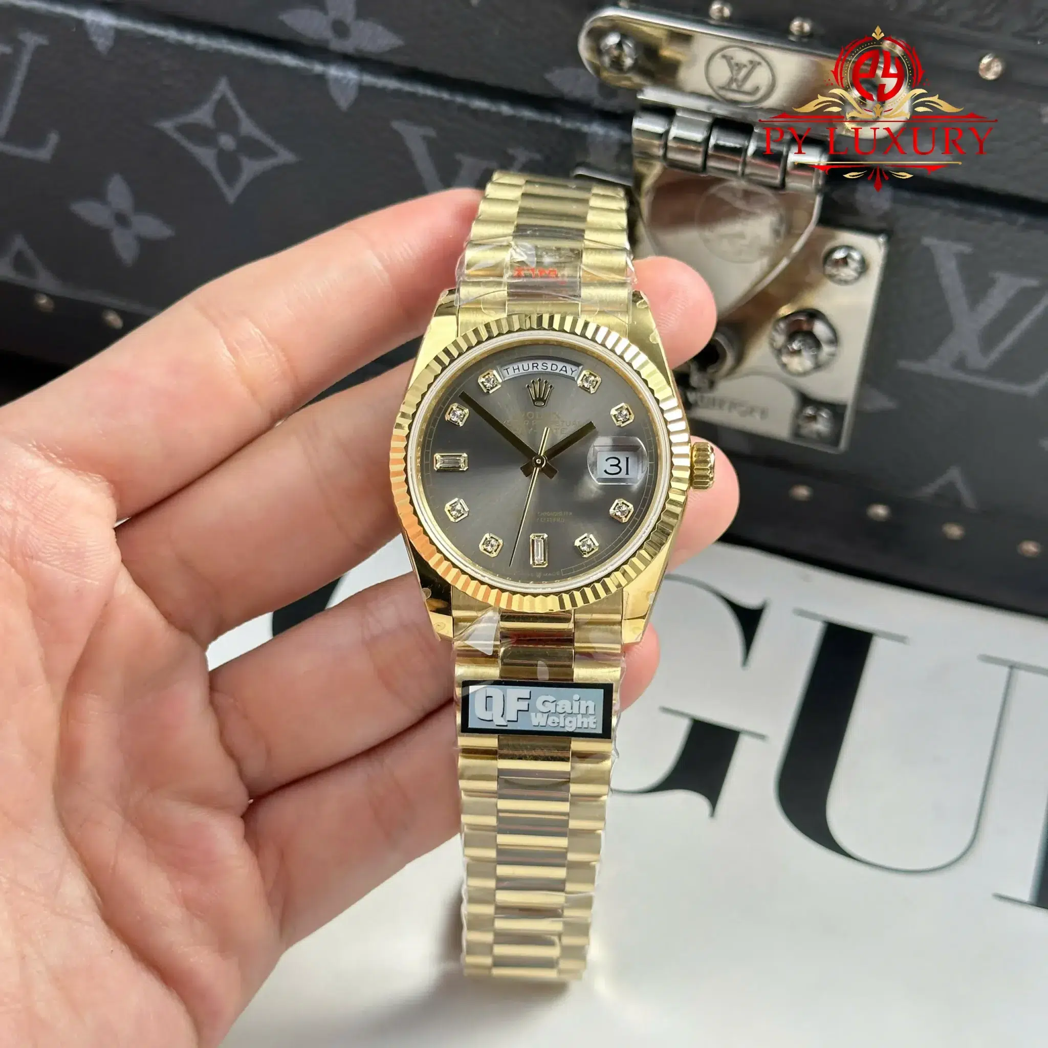 - Case Material: 904L Stainless Steel – Gold PVD Coating