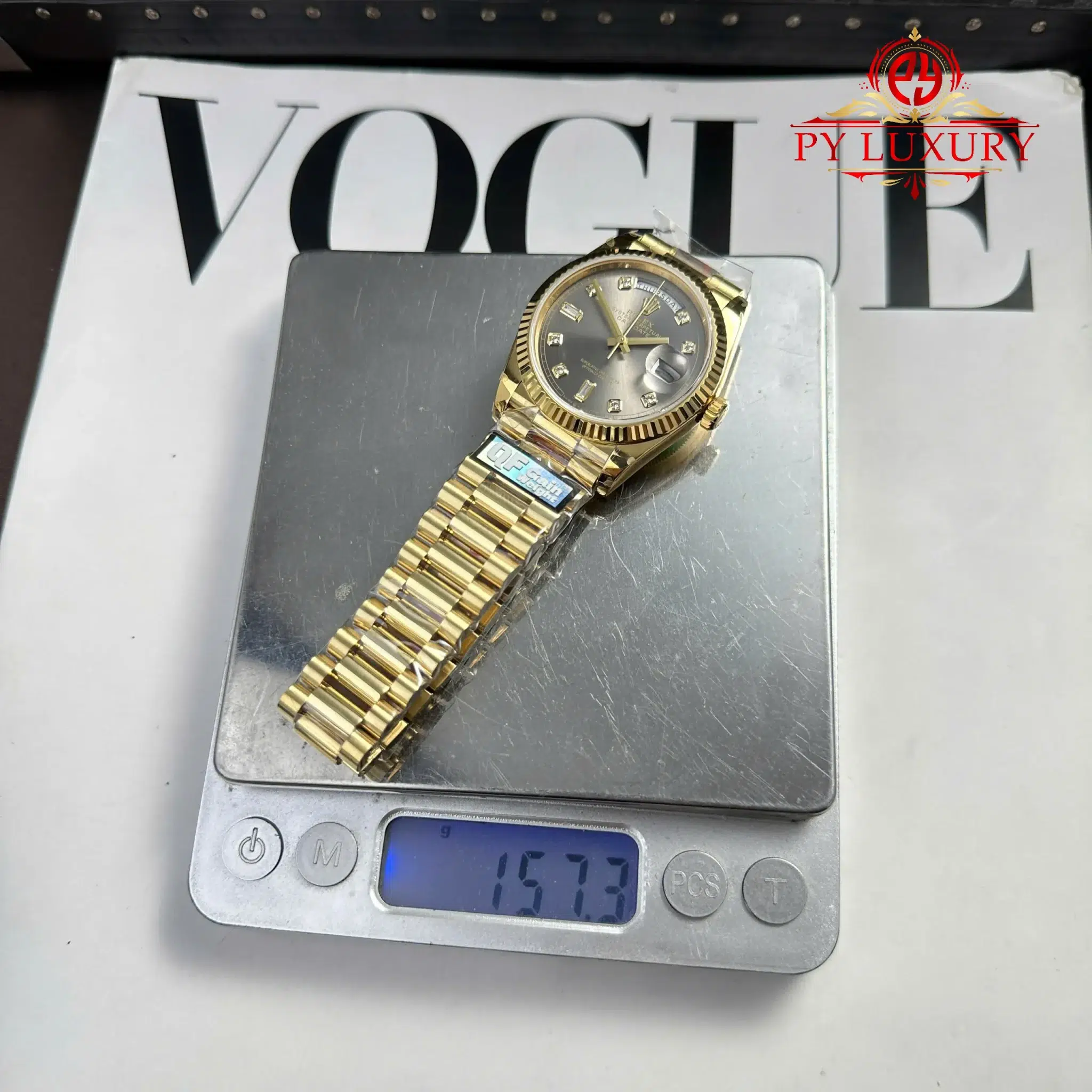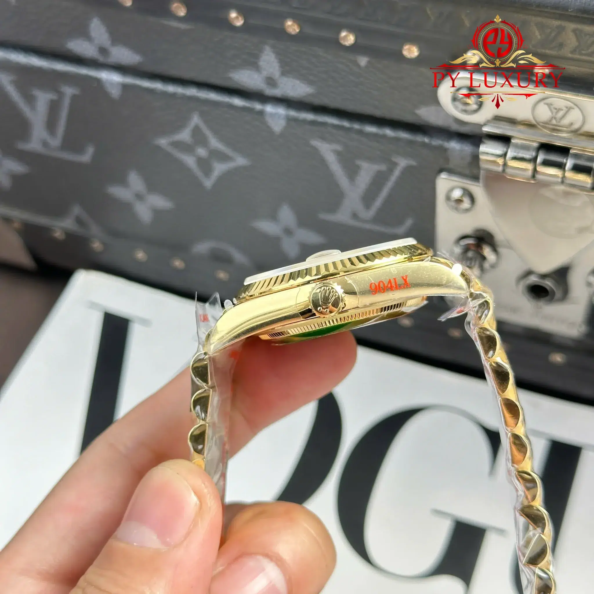 - Band Material: 904L Stainless Steel – Gold PVD Coating