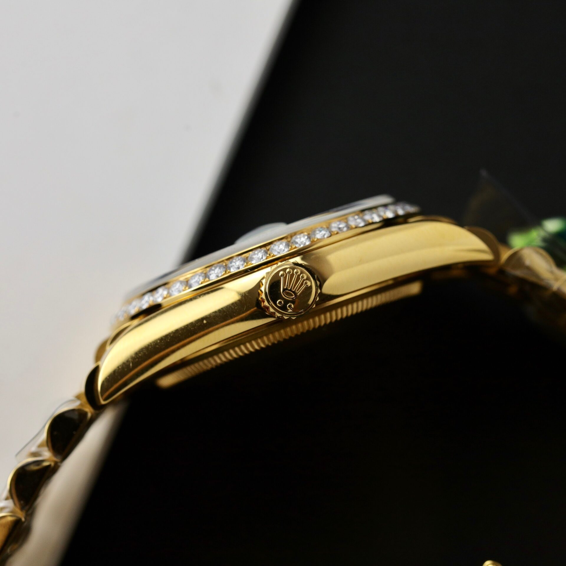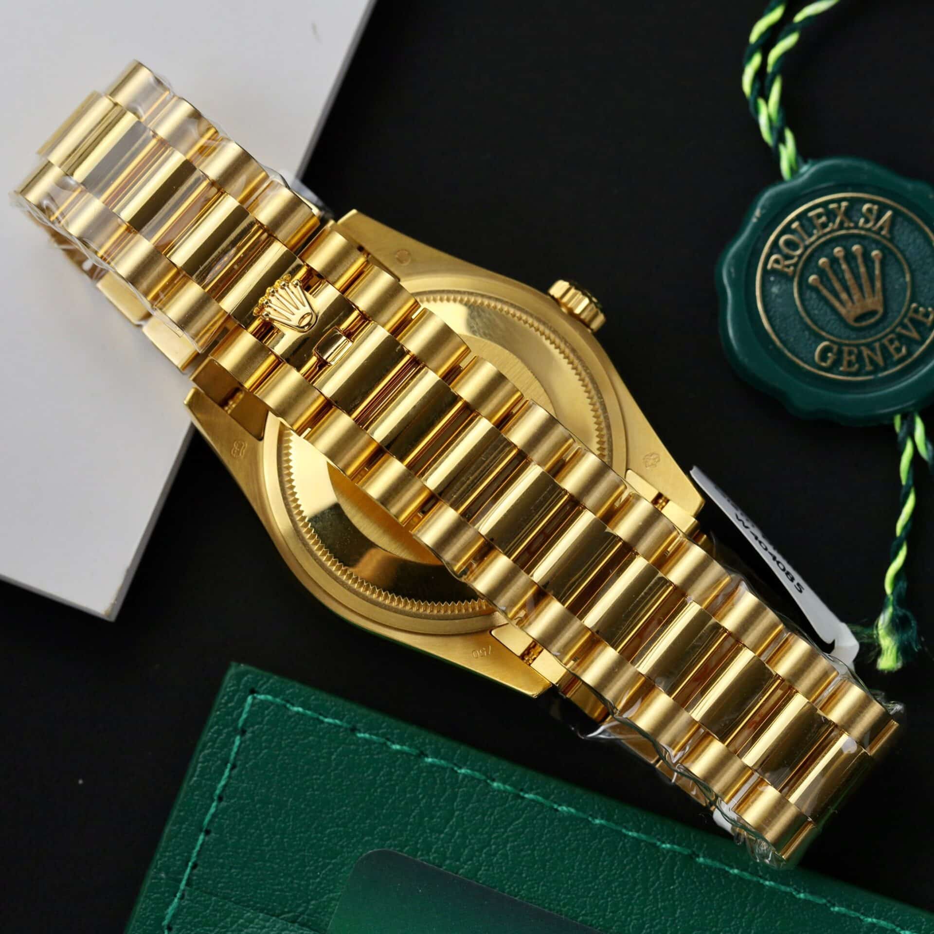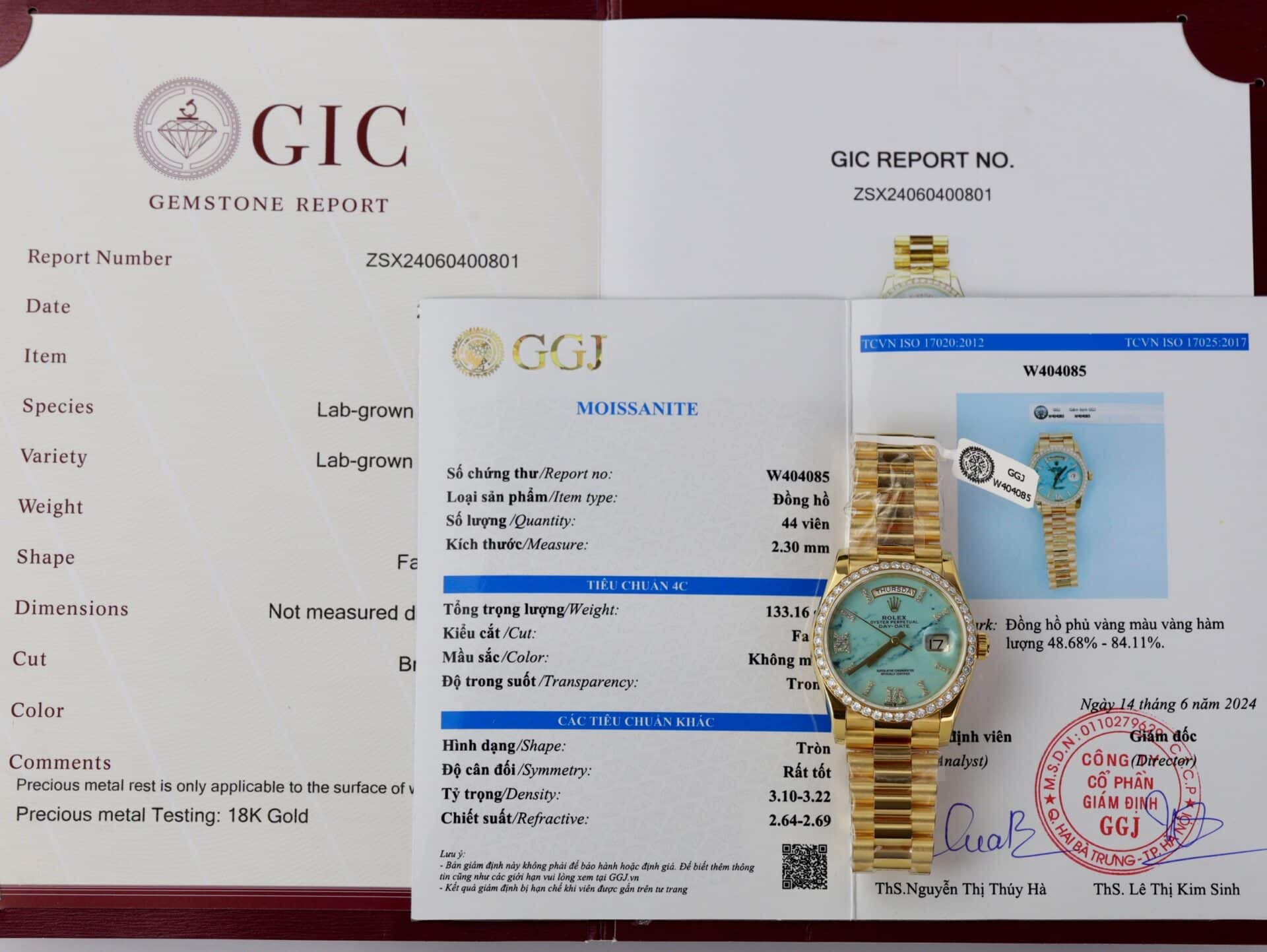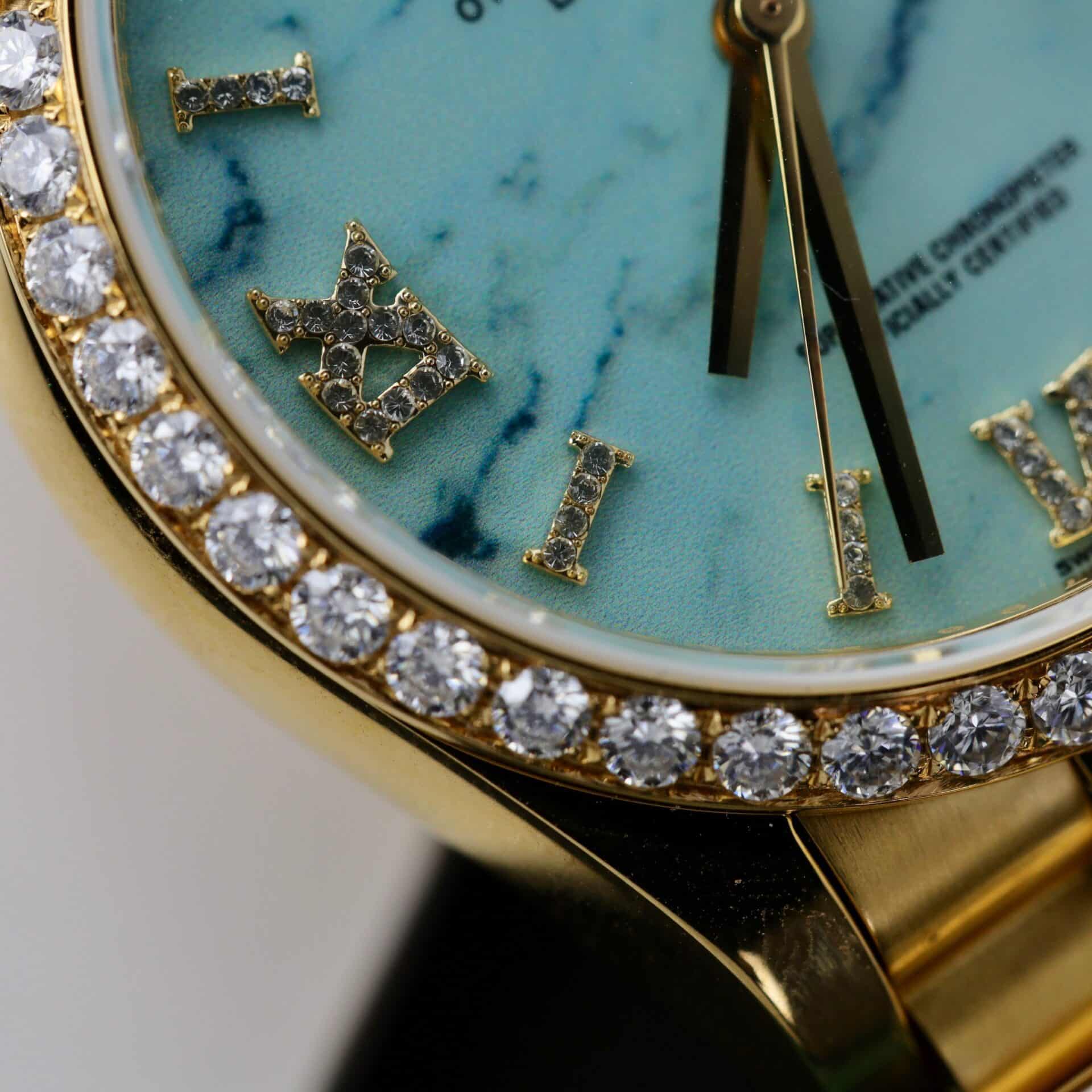 Rolex Day-Date 128348RBR-0037 Turquoise Dial 18K Yellow Gold Wrapped Moissanite Bezel 36mm