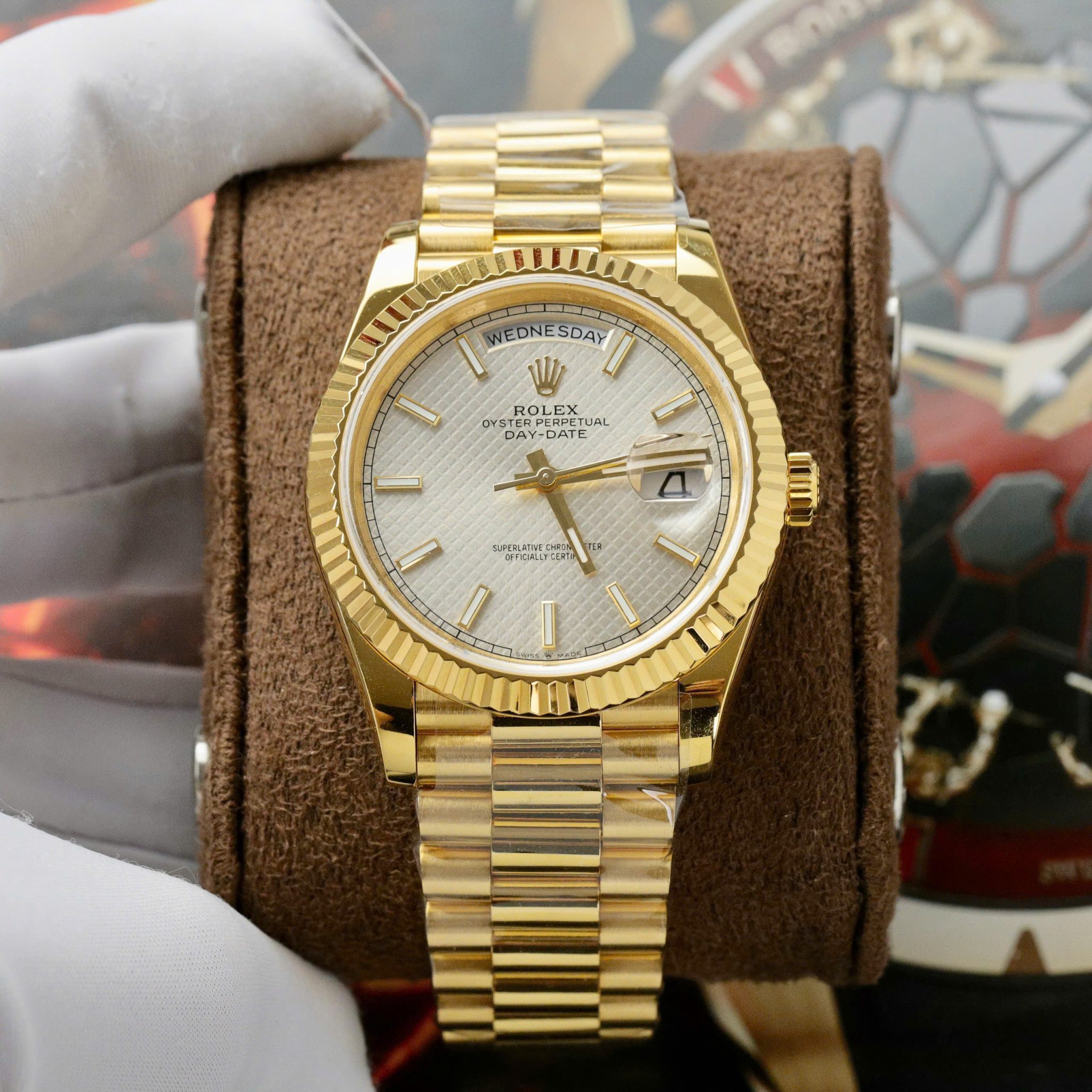 Rolex Day Date 228238-0008 Silver Diagonal Motif Stick Dial 18K Gold Wrapped Best Replica V3 GMF 40mm
