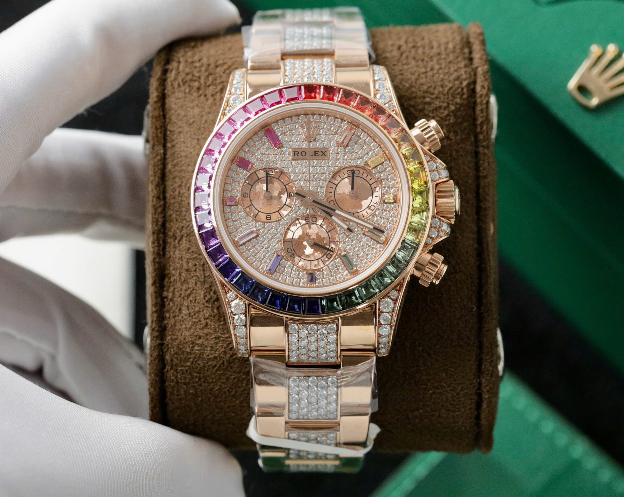Rolex Daytona Rainbow 116595RBOW Full Diamond 18K Gold Wrapped Custom Moissanite Best Replica 40mm