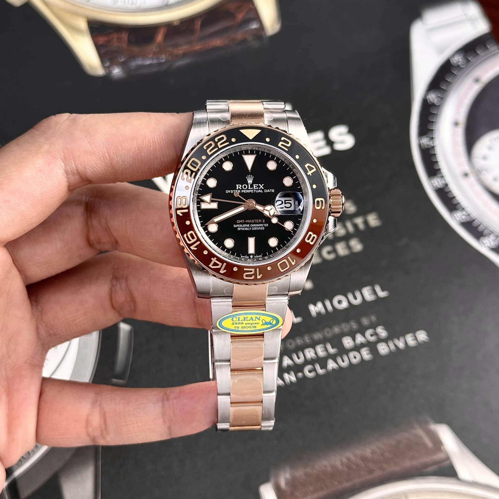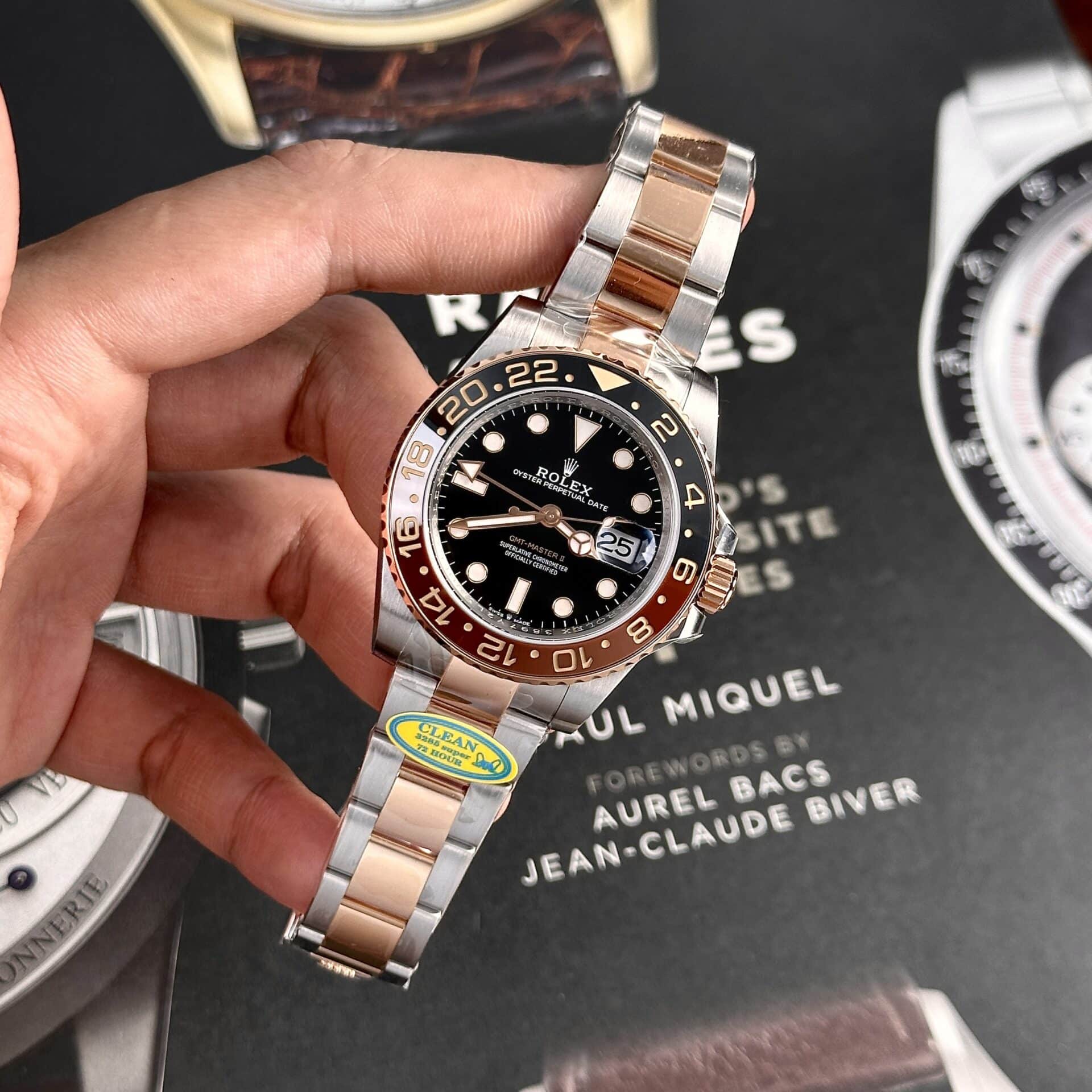 Rolex GMT-Master II Root Beer Two Tone Black Dial Super Clone Clean Factory 40mm