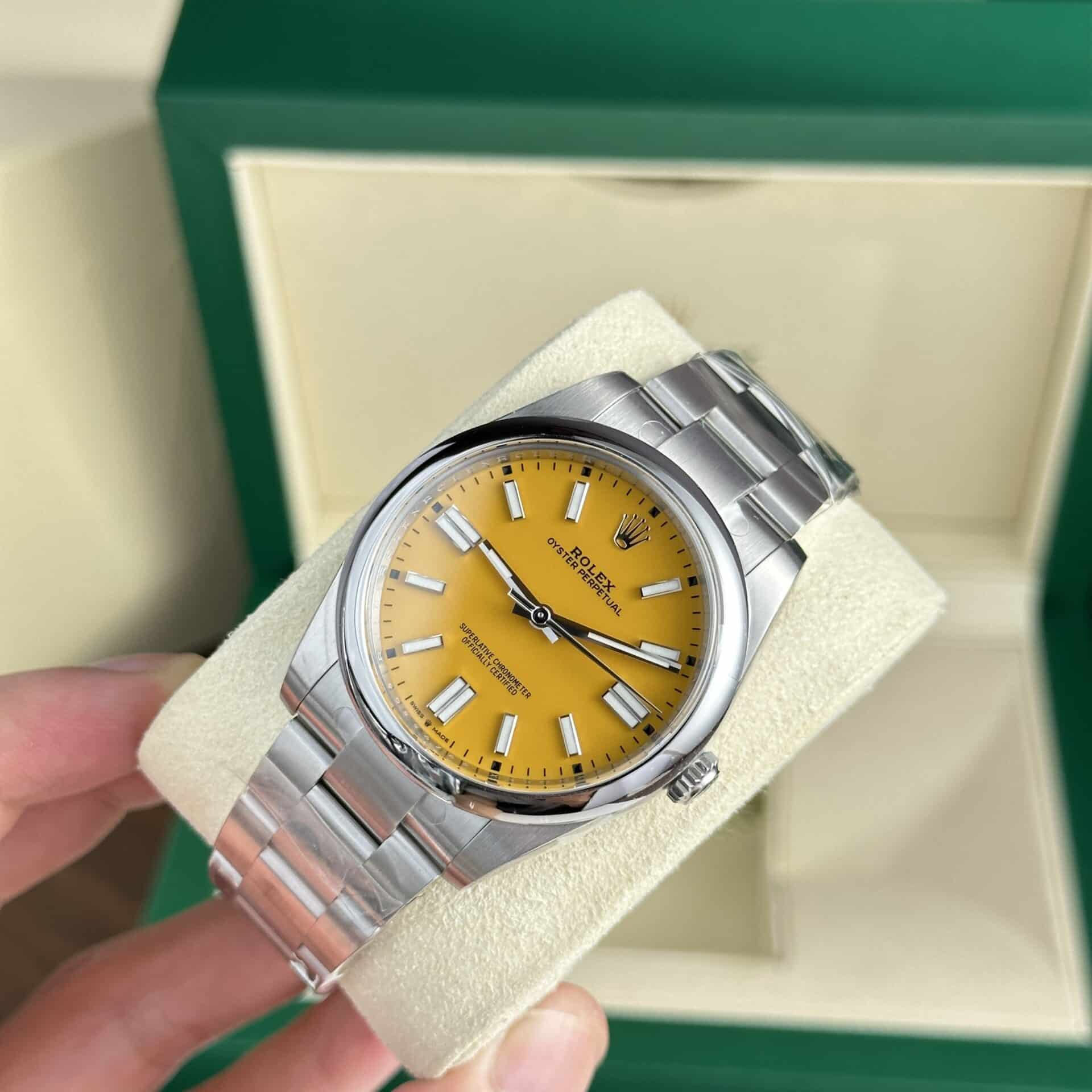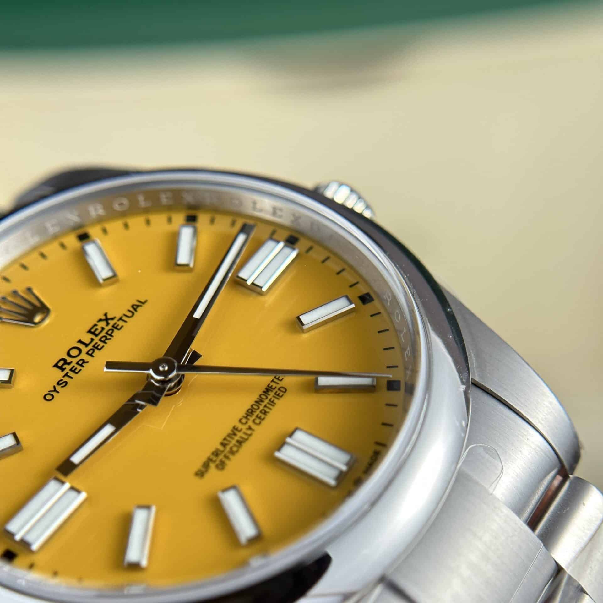 Rolex Oyster Perpetual 41 124300 Yellow Dial Best Quality Replica Clean Factory