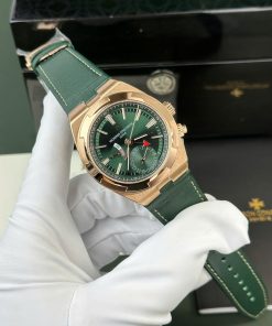Vacheron Constantin Overseas Dual Time 7920V/210R-B965 Rose Gold Green Dial Leather Swiss Replica PZF 41mm